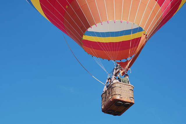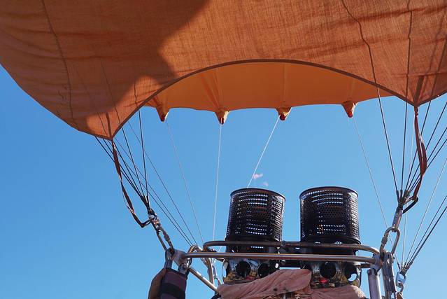 没等太久就轮到我们啦。热气球的篮子看着不深,真的自己爬了一回才发现腿要抬过篮子也是真不容易,我基本是连拽带拖被工作人员举着送进篮子里的。每次升空大概能搭载5个乘客,都进到篮子之后基本就没有转身的空间了,为了安全起见也不建议在空中乱动,所以想拍照的话一进篮子就要站定机位哦。