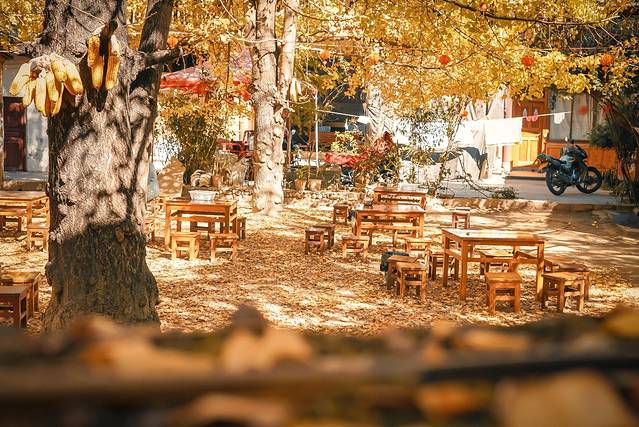 如果时间充足,那可以在农家乐里用午餐,这里正当季的银杏鸡汤还是不错的,不过价钱并不便宜,但胜在味道不错,花钱尝尝新鲜的农家菜还是值得的。而且这里每家每户都种银杏树,也许农家乐的院落正好很漂亮呢。在树下吃饭,喝茶,聊天,可比在外头摩肩接踵的观赏要惬意多了。