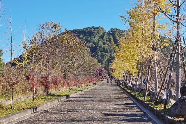 银杏村是一个期间限定的童话世界,满城尽带黄金甲说的就是11月底12月初的银杏村。不过想要一睹这个童话世界的真颜还是挺不容易的。这不得不说云南的有些当地景点真的是商业化的厉害,银杏村就是这样。明明有宽敞的车道,可偏偏要把游客拦在村子的一公里外,这样才好卖观光车票。一公里下车之后,还有一公里的沿街小摊需要步行通过,你说这观光车不是在闹么?反骨如我,既然怎么都免不了走上一公里,那不如直接用11路把那两公里走完吧。11月秋高气爽的,就当是锻炼身体啦。