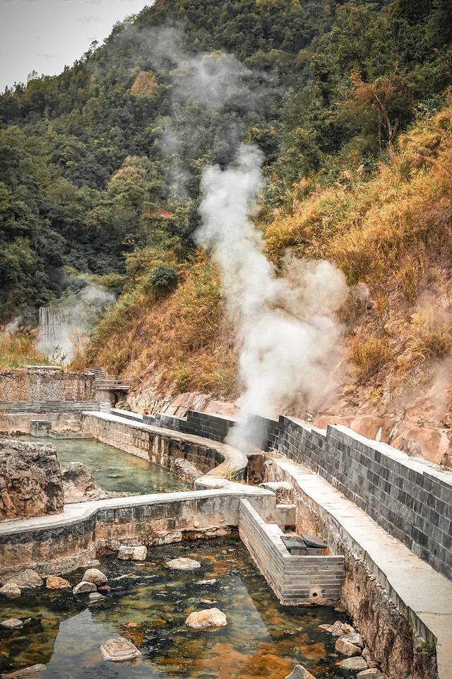 爬到半山腰的时候会遇到一口姊妹泉,温度也很高,目测也是能煮熟鸡蛋的的那种。但其实景区里除了山顶的大滚锅之外,其他泉眼都是不允许煮鸡蛋的。