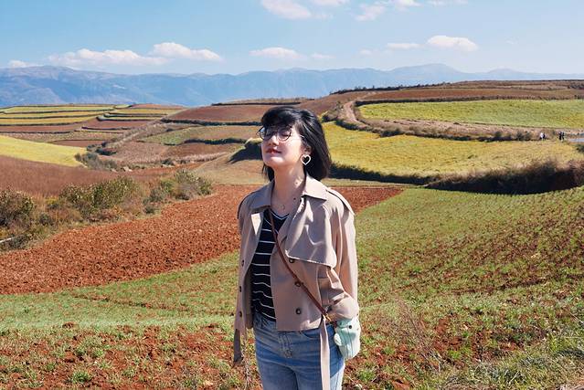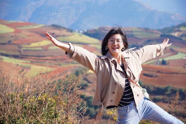在螺蛳湾逗留了一会,我们又九曲十八弯的来到了第二站——落霞沟。光听名字就知道这里最适合看日落啦。东川红土地最出圈的照片就是傍晚时分在这里的机位拍的。我们这样的一日游就没机会在这里蹲日落啦。如果是摄影之旅的话,那最好在东川过一夜,既可以拍日出,又可以蹲日落。完美~