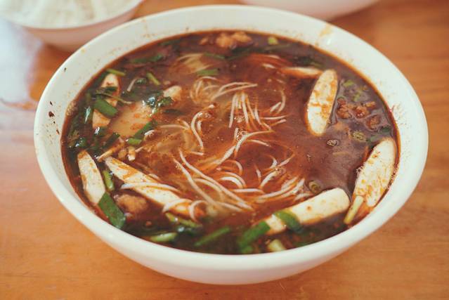 店铺的位置超好找就在朱家花园隔壁。原本呢我也不是要吃大肠的人,还担心还会有怪味。结果完全是多虑了,QQ弹弹没有任何异味,微辣的汤底再搭配清爽的草芽,简直不能更棒了。而且一定要选最贵的豪华版,这样料会比较多,还有一只大鸡腿,吃完超满足。米线如果不够的话是可以免费加的,所以完全不用担心吃不饱。当然,如果实在吃不惯大肠,店里也有三鲜米线,草芽米线之类的可以选。