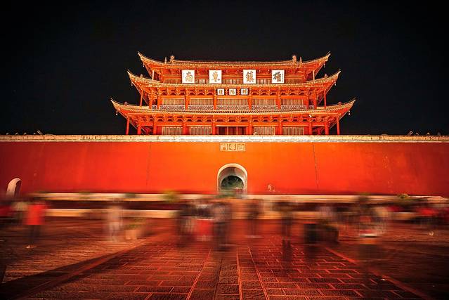 建水古城并不算很大,一共有东西南北四座城门,所以步行探访四座城楼就可以把整个古城逛遍啦。四座城楼中最出名的当属东门——迎晖门(朝阳楼)。这座跟天安门神似,但比天安门历史悠久的多的城门是四座城门中唯一保存下来的古建,其余三座城门均在明末清初毁于战火,现在我们看见的都是后来复建的。朝阳楼风吹雨打六百多年,经历了多次战火和地震依然完好如初,可以说是建水的地标建筑啦!