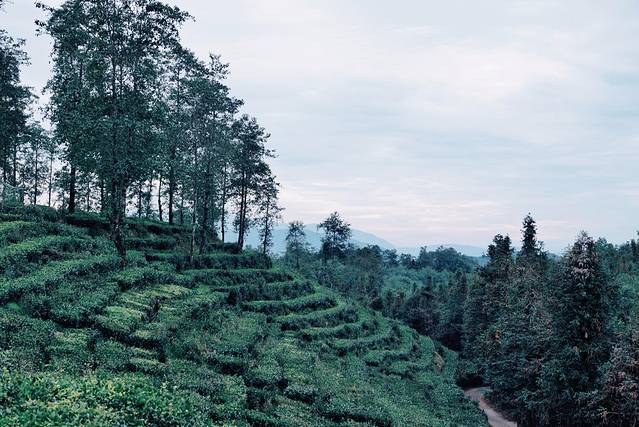 说来老爹超man的,他指着面前的茶山说我带你爬上去。我看了看面前这座略陡峭而且连步道都没有的茶山,这可怎么上去啊?说时迟那时快,他一把拉住我,从茶山缝隙的土坡里蹭蹭蹭的登了上去。