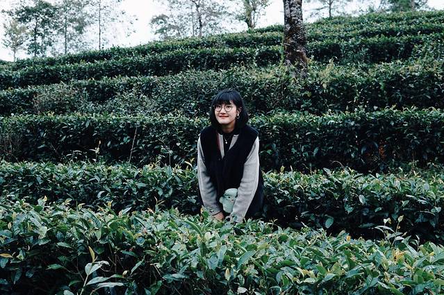 早上收到客栈老板的消息说今儿有晚霞。想说虽然去不了野鸭湖,那茶园里看晚霞肯定也不错!吃完饭在茶园的观景台等了好一会,夜里的腾冲特别冷,山里就更冷了。看着有点阴沉的天空和厚厚的云层,怎么看都不像有晚霞的样子,失落的准备打道回府。刚走到茶园门口,突然发现天色中露出了一点微红!好像是晚霞的前兆啊!晚霞就和日落一样,转瞬即逝的美丽。这时候跑回茶海的观景台肯定是来不及了,可站在山里晚霞都被山体挡住了,这可怎么办?