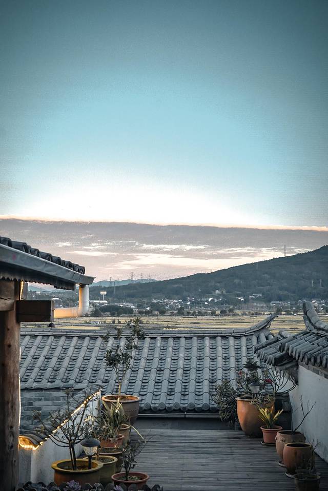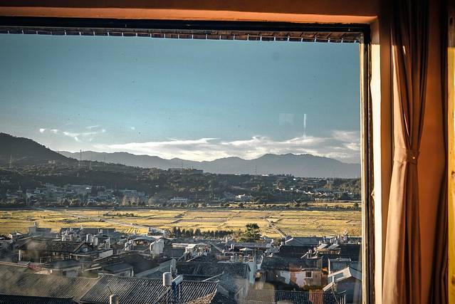 腾冲的客栈挑得我眼花缭乱,最终是因为攻略上的一句话才敲定的。“古城不允许建高于两层的建筑,遇到三楼大露台的客栈,拜托请定”。这家客栈不是网红,但绝不输网红。客栈在古城最西边,正对着一片稻田。往前看是田园风光,往后看是古镇风情,绝妙啊!而且我抢到了三层的露台房,整层只有我们一间屋子,完全承包了整个露台。不论清晨傍晚,在露台上吹吹风,看看风景都惬意极了。
