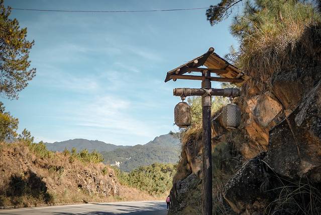 上山的路其实还挺枯燥的,虽然眼前的画面很美好,两岸的青山,盘旋的山路,湖天一色的蓝,郁郁葱葱的绿,但山路狭小不太方便随意停车拍照,所以只好一个劲的往上开。