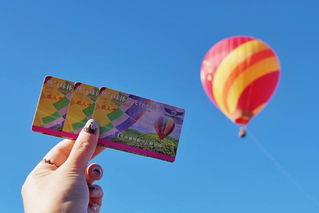热气球这个项目还是很吃香的,一大早就已经满满当当的人在排队了。在售票窗口领了票,就可以去一边等叫号啦。每次热气球升空之后,大概会在空中停留10分钟,全程大概20分钟左右。在底下看着热气球起起落落其实也还蛮有趣的。