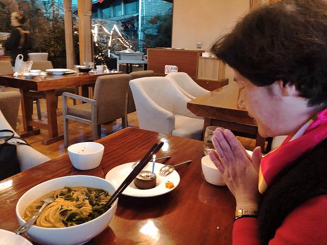 餐后点了一碗牛肉面,权当是长寿面啦。熔岩小蛋糕也被用来当生日蛋糕,特意请服务员帮忙找了一根蜡烛,插在蛋糕上还是有点生日气氛哒。「嘟嘟生日快乐呀!爱你哦!」