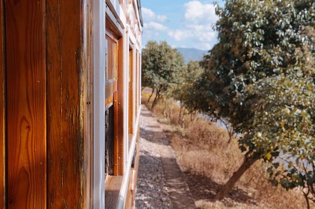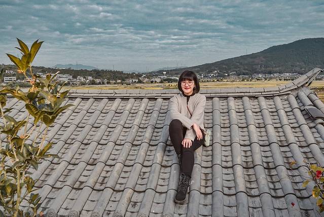 第二天特意拜托老板给开了门去里面逛了一圈。客栈内部装潢更偏日式一些,但也超绝的。早就看上了这个小亭子,一进客栈就立马找到了它,这个视野绝对不输网红的那些稻田边的咖啡店,酒吧之类的。