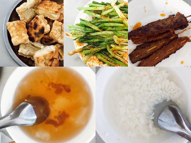犁花尖也是博主力荐的她觉得最好吃的建水豆腐。这家苍蝇馆子藏的挺深,好在导航位置准确。试了干包浆和烤豆腐两种,是真没有吃出传说中的芝士口感,可能是我对豆腐的爱实在寥寥。但这是我吃过的唯一一顿建水豆腐,也不好评价好坏。不过他家的烧烤很棒,尤其是小肉串,简直太好吃了吧!配上木瓜水和甜米酒,连我妈这种鄙视烧烤的人都吃的津津有味。他家还有凉卷粉和米凉粉味道也不错,很爽口。