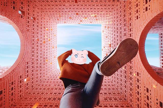 虽然从外头看,这座建筑小小的,但因为进深深,其实还蛮大的嘞。这个方方正正,粉粉嫩嫩又弯弯绕绕的建筑很容易联想到一个游戏场景,纪念碑谷。有种穿越次元的感觉。