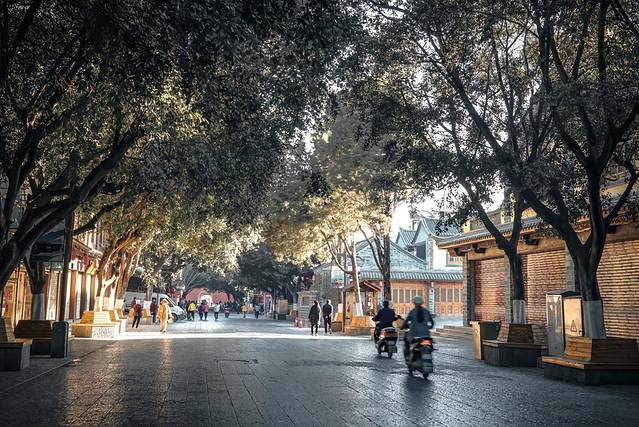 在这个慢节奏的小城,早上出门,会发现大多数店铺都还没有开门。石板街上行人寥寥,偶有小贩挑着扁担路过,三三两两的电瓶车咻咻穿过,这座小城还没有醒来呢。也得益于小镇醒的晚,少了吆喝,少了人声鼎沸,这座古城的商业气息也被暂时藏了起来,走在街头感受到的全是市井生活的样子。