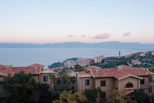这里的叠墅位置超好,几乎每一幢都是一线湖景房,位置越高,视野越清楚。不过能住到哪幢叠墅就要看运气啦。我们住的这幢位置还不错,基本可以看到整个抚仙湖,视野超一流。照片里右边紧贴抚仙湖的红顶房子就是希尔顿酒店了,他家的视野毫无遮挡,绝对是最漂亮的,当然价钱也挺漂亮的。如果来这里度假泡酒店的话,还是挺不错的选择。