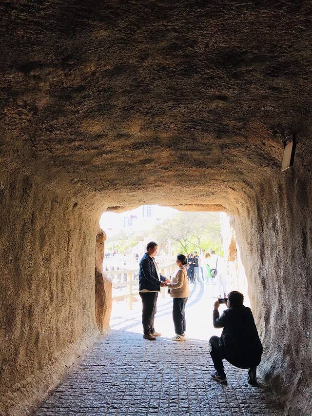 燕儿岛山公园其实是一个休闲的依山傍水的公园,燕儿岛比起小麦岛来说人流没有那么集中,这里的海滨栈道比较长,海边的礁石上也有很多人,下午的阳光搭配湛蓝的海面,远处的船只不紧不慢的远航着,沿着海滨栈道打算去寻找网红桥洞。