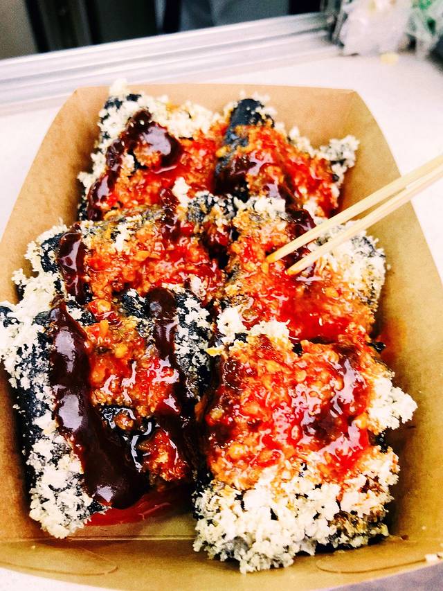 章鱼丸子,暴雪臭豆腐,烤猪蹄,羊肉串,烤海鲜,花甲粉,脂渣,鱿鱼丝……没有几个胃的话还是不要轻易来台东夜市了,根本吃不过来。