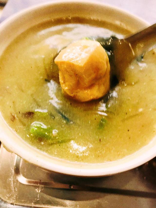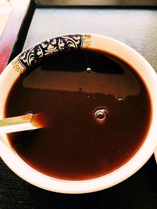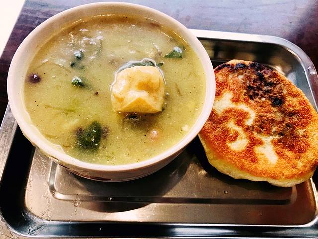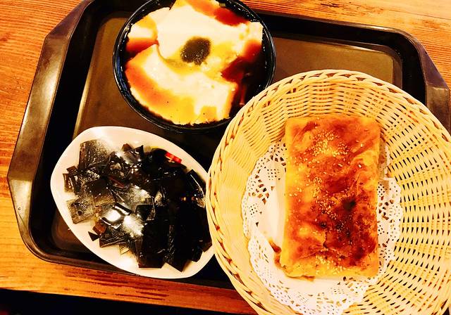 青岛的早餐里面必须要有甜沫和火烧,老梁记是一家连锁店,老板是位青岛大叔,说着一口山东味的普通话,听不懂,但是很有青岛味道。甜沫其实就是加了菜叶子,豆腐泡,粉条和小米熬制的米汤,搭配精肉木耳馅的火烧,简单又饱腹。