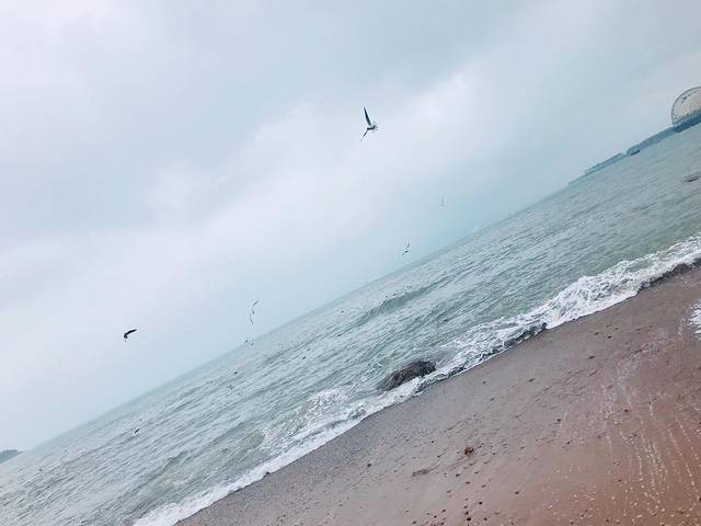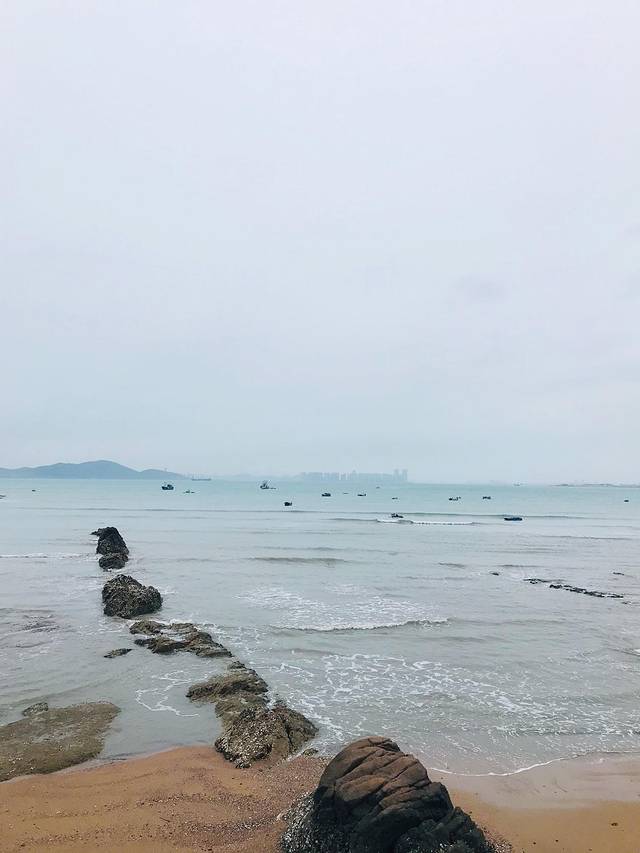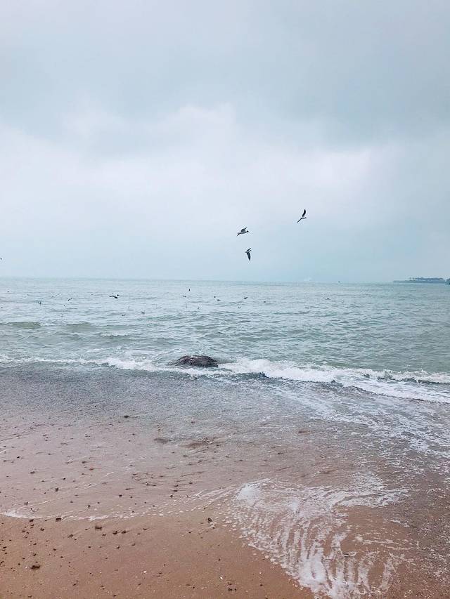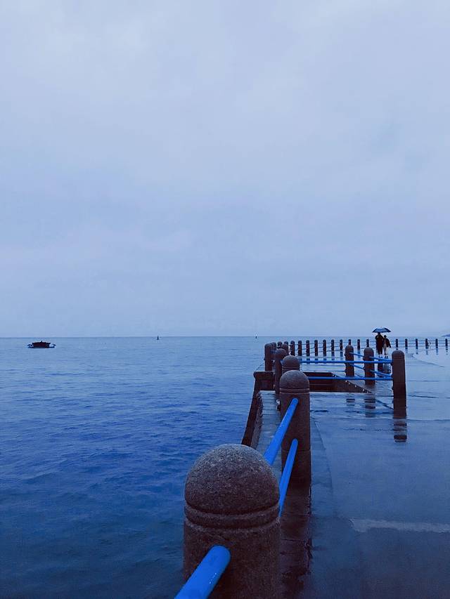 因为阴天,所以第二海滨浴场的海显得有点湛青色,海边也没什么人,独自拥有整片大海的感觉。