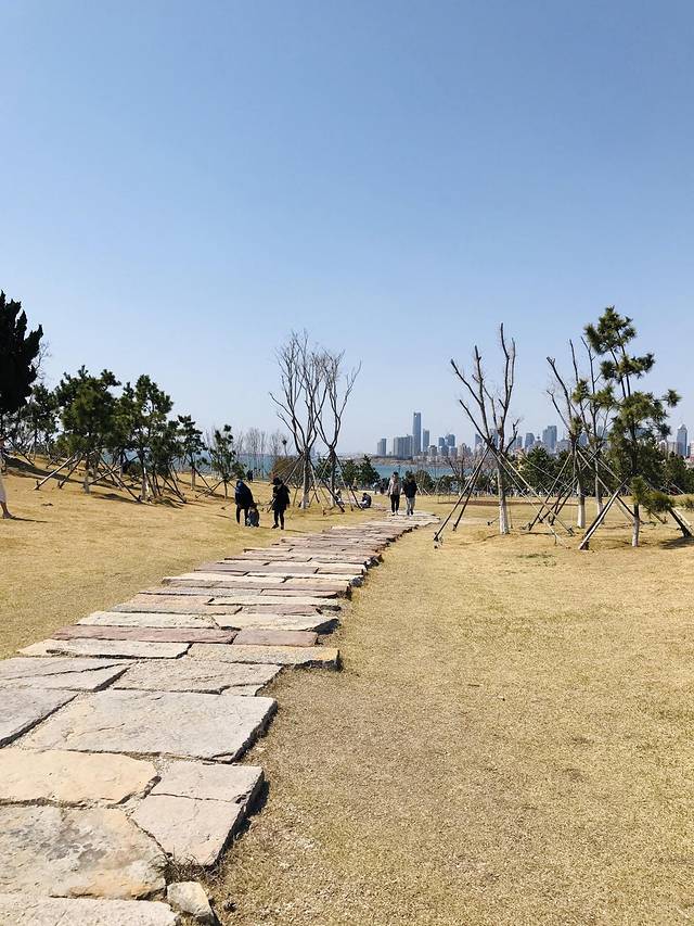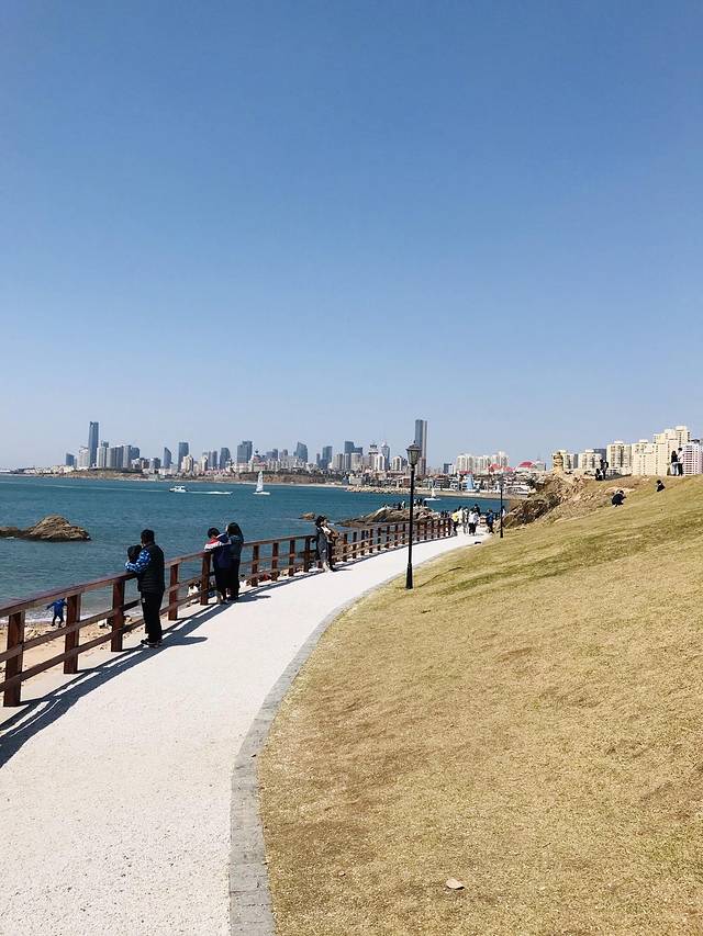 青岛是个海滨城市,想要看海真的跟逛自家的后花园似的,青岛有十个海滨浴场,看海真的看不过来,而小麦岛是2018年才开发出来的,位于青岛崂山区,四面环海,岛上栽种着绿色的柏树,还有大片的草坪,因为天气冷,草坪都还不是绿的。