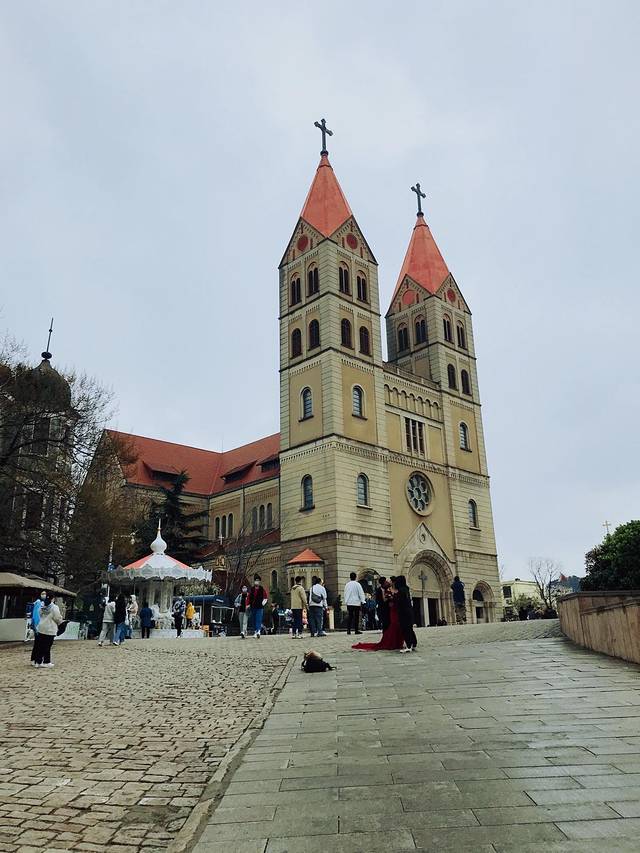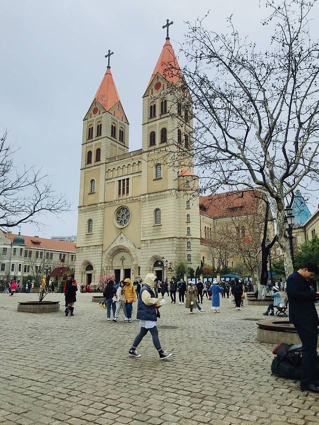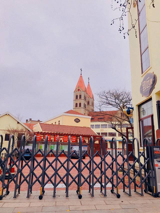 原本可以最佳的欣赏天主教堂是在对面的青岛书房,但是由于内部装修并没有开放,所以只能在外面欣赏一下这座前身是安娜的别墅,2014年才改名叫青岛书房。