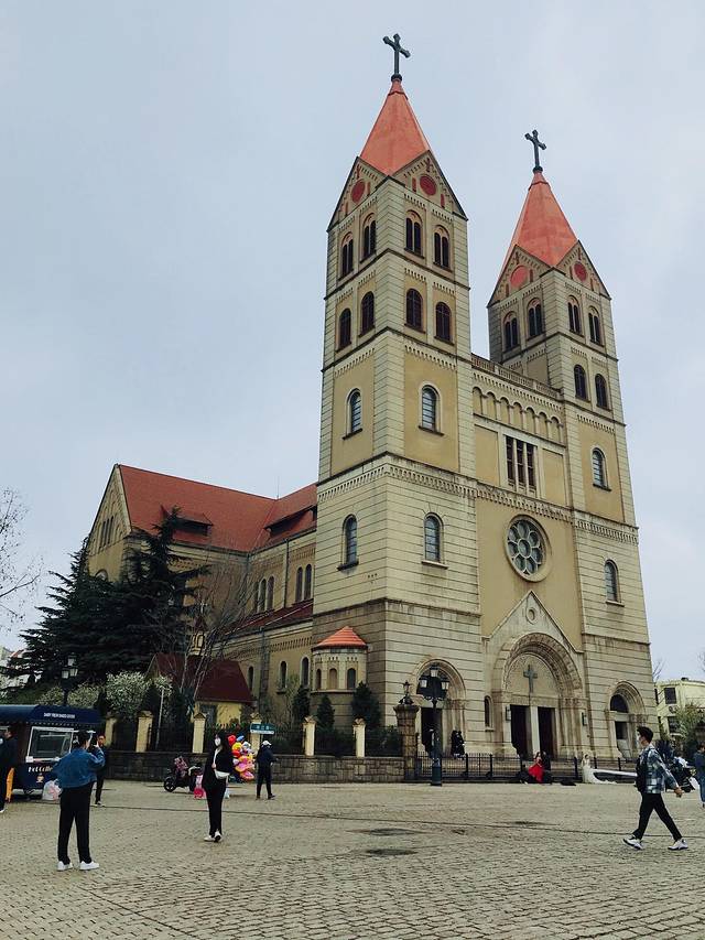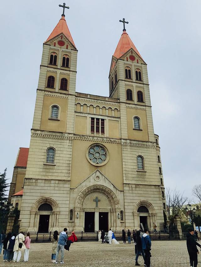 离开栈桥,沿着浙江路一直走,你会看到青岛最美的教堂——圣弥厄尔教堂,这座天主教堂始建于1932年,是由德国设计师毕娄哈依据哥特式和罗马式建筑风格而设计,教堂以黄色花岗岩和钢筋混凝土砌成,表面雕以简洁优美的纹案。窗户为半圆拱形,线条流畅,显得庄重而朴素。大门上方设一巨大玫瑰窗,两侧各耸立一座钟塔,塔内悬有四口大钟,一旦钟乐鸣奏,声传数里之外。