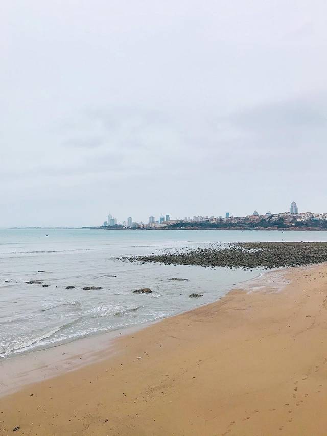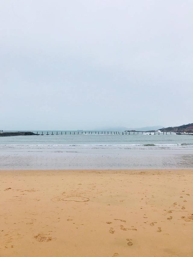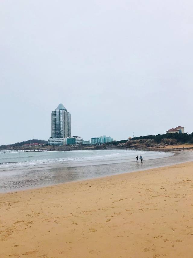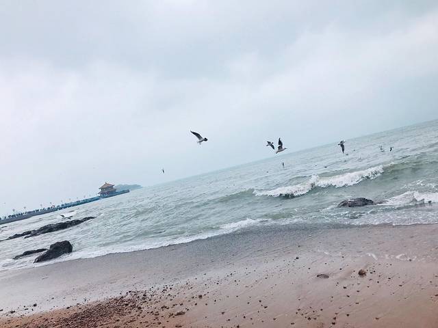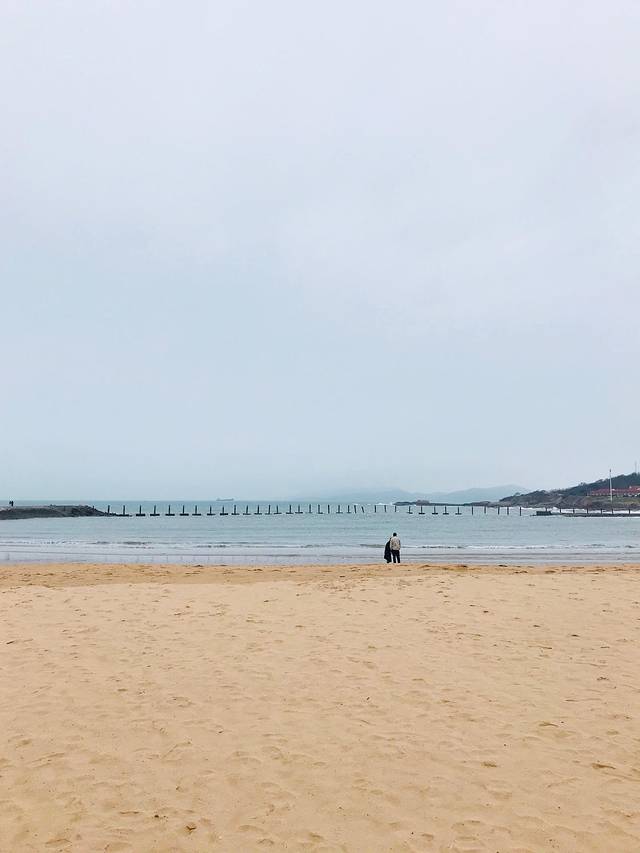 此刻的天上飘起了雨,沿着海岸线走着,风有点大,不禁缩了缩脖子,来到青岛的第二海滨浴场,此时的人并不多,沙滩好大好宽,脚踩在沙面上,感觉沙子很细腻,有点想脱掉鞋子在沙滩上狂奔的欲望。