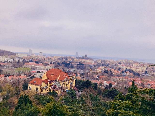 查询到接下来都不会下雨了,而我手中的伞也终于完成了它光荣的使命,让它流落在天主教堂前面的垃圾桶了。决定沿着平原路继续逛着青岛老城,一路走到了信号山公园,其实并不算远。