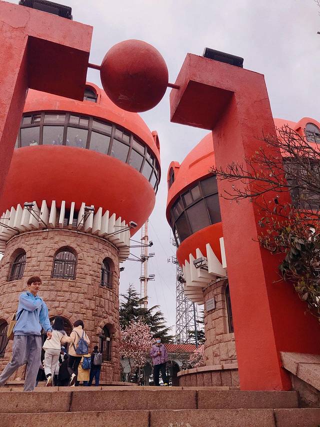 信号山公园需要购买门票,5块钱的门票也不算贵,海拔不过98米,上面有旋转观景台,10块钱可以上去,可以更好的欣赏到青岛老城。但是四月的青岛是看不到“红瓦绿树”的,所以就没去观景台了。