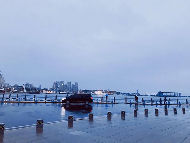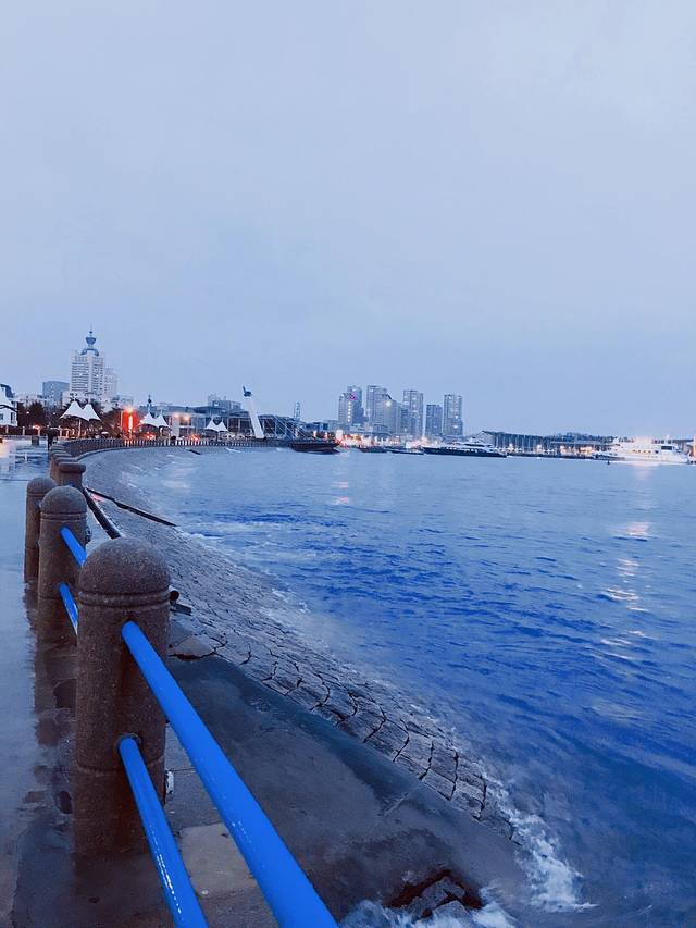 从五四广场走到奥林匹克帆船中心其实并不算远,一边听着海浪涛涛,看着岸上的灯光,夜幕下的五四广场也显得美轮美奂,只是夜晚的风太大,而且下着雨,我便没有继续往前走。