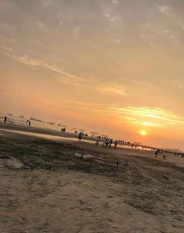 我们第一天到北海银滩,看看银滩的海和日落,银滩的沙子真的好细好白,不愧是银滩,哈哈,踩在上面真的好舒服。