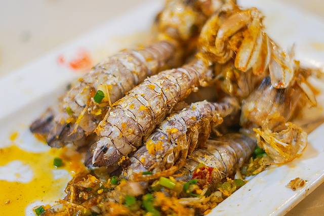 玩完海,在公共洗手间洗个脚脚,我们就去百年老街觅食了,来北海,怎么能少得了海鲜大餐呢,尤其是不靠海的小伙伴,对吃海鲜可真的是太向往了。我们今天选了一家在当地口碑还不错的汪姐海鲜,离老街也很近,位置也比较好找,我们在团购上搜了汪姐海鲜,买了一份三人套餐,分量真的超级足的,我们三个人都吃得超饱,老板娘也很热情,给人一种亲切感。说一下我们吃的海鲜哈,香辣蟹和椒盐皮皮虾,香辣芒果螺我们三个是一致认为味道最好的,香辣蟹,螃蟹都有好多黄,口味也是鲜香适中,给人一种回味无穷的感觉,椒盐皮皮虾,虾肉很嫩,还有一股淡淡的鲜香味,虾壳的咸甜,感觉口感就好特别,特别好吃,香辣芒果螺呢,咸度适合,每一口螺肉都是QQ弹弹的。值得推荐大家尝试一下。