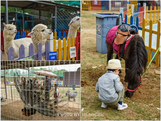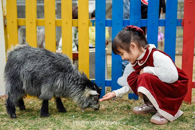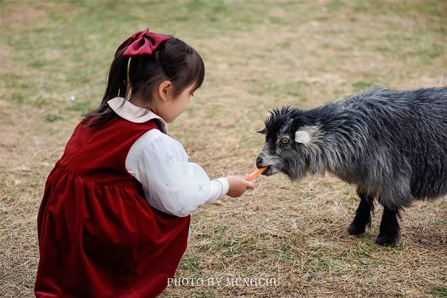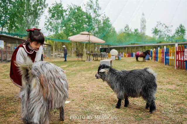 自然休闲的萌宠主题乐园能够近距离的喂养鸵鸟、孔雀、羊驼、小矮马、黑天鹅等动物,但最受欢迎的是散养在乐园里的几只小山羊,个头矮矮小小还不及小丫头的腰高,不管是胡萝卜菜叶子还是谷物玉米都吃得津津有味。小丫头虽然一向很喜欢小动物,但是对比她块头大的动物还是有着天然的恐惧,但面对这几只小羊羔完全是爱不释手,恨不得把手里的好吃的都喂给它们!