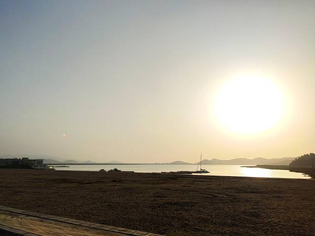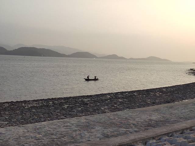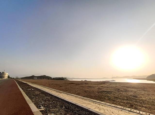 湖边有沙滩、堤坝,零零星星停着几艘快艇,和像鸬鹚般匍匐在水面上的小渔船。因为天妃湖旅游项目正在开发,前来散步、赏玩的基本都是附近的居民,其他的大概就是开发商,没有了人挤人的烦恼,大家难得的享受景色带来的惬意,谈谈情、说说爱,邀几位知心好友聊聊人生、侃侃大山。