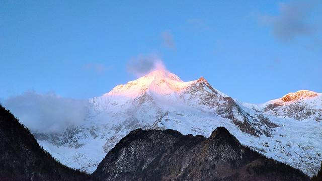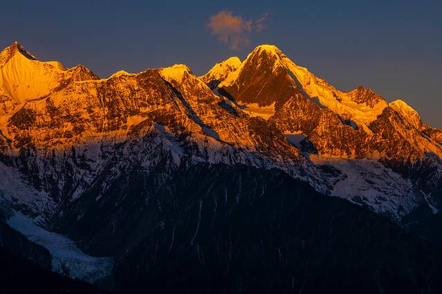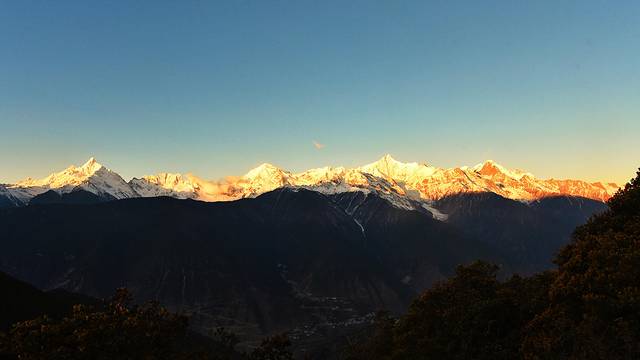 又是很幸运的一个早晨,连续来两次香格里拉都能见到日照金山。