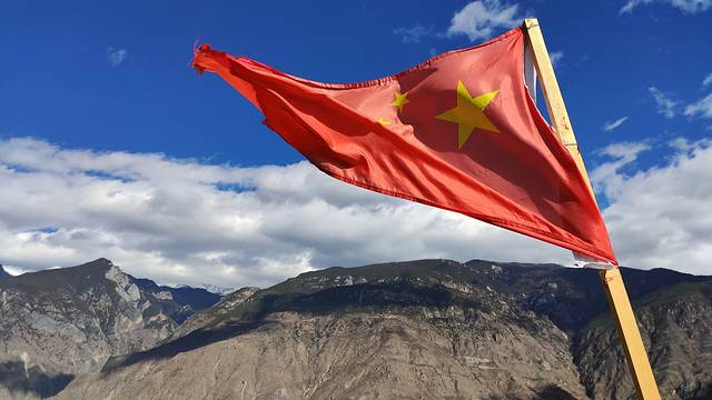 五星红旗随风飘扬,那天风很大。