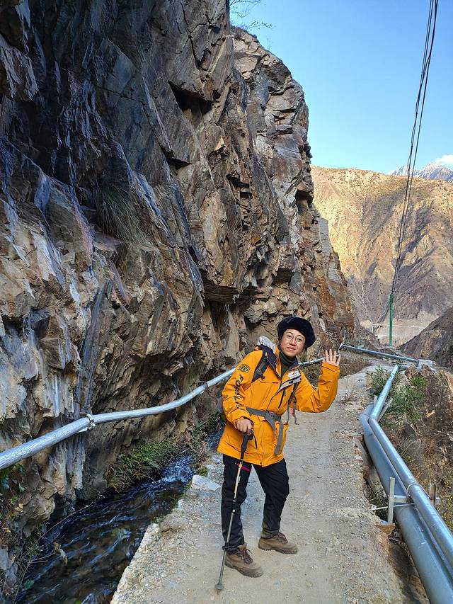 最后一段路一直都在山崖边走,左边是崖体,右边是悬崖,而且还时不时的会刮来一阵阵强风,有种会被吹下去的感觉。