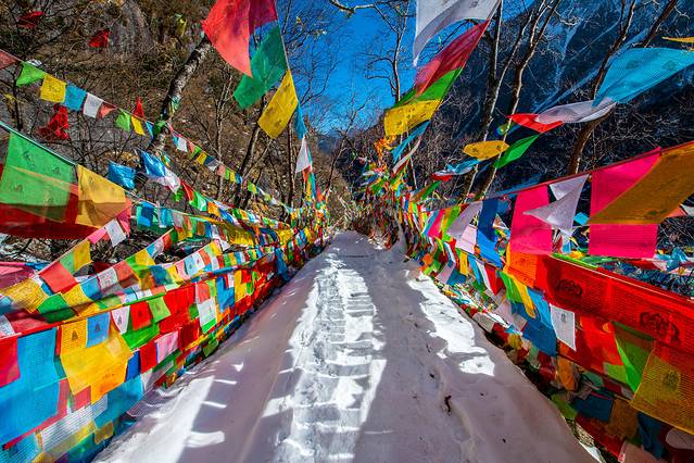 尼农峡谷的溪流由雨崩村几座雪山的雪水汇聚而成,一路绵延十多公里,最终汇入澜沧江,流向远方。