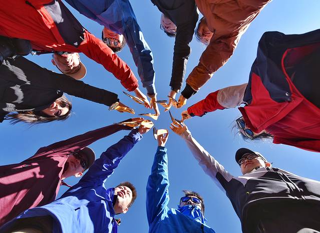有位大哥带了无人机上来,我们拍视频,做游戏,堆雪人,打雪仗,活动甚是丰富。人多就是比较热闹,比较有趣。