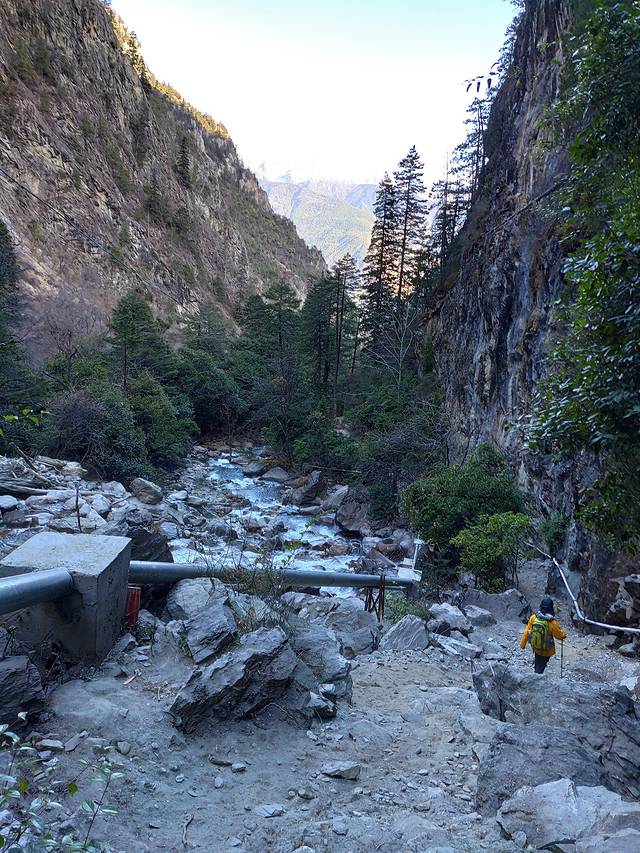 下午3点这样从下雨崩出发,走尼农峡谷至尼农村,一共14公里,几乎都是下坡。