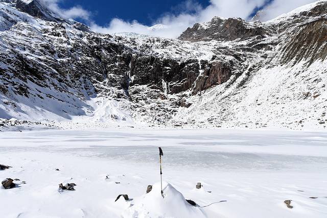 被白雪笼罩的笑农大本营还是别有一番景色的,如果不是雪季(会有雪崩),这里还会有藏民提供食物和补给。
