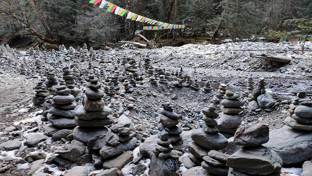 路遇一片非常大的玛尼堆,很多很多。