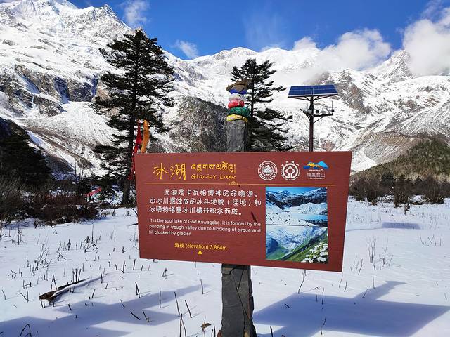 冰湖是卡瓦格博的命魂湖。由冰川掘蚀成的冰斗地貌(洼地)和冰碛物堵塞冰川槽谷积水而成的一类湖泊。