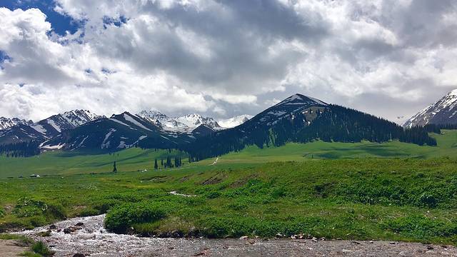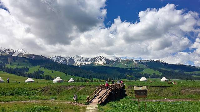 闻名的空中草原那拉提,一个被雪山环绕着的大草原