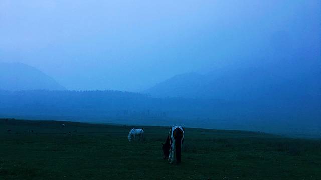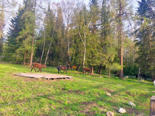 我们住的小木屋后面就是骏马的家,晚上突然听到马叫,我们凑到窗外一看,居然离我们这么近,这也是我们离骏马先生女士们最近的一次了吧