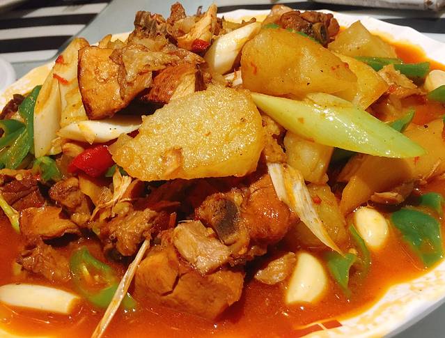 这边食物辣的和面食为主,每份菜色都有加了番茄,所以感觉味道都差不多。然后没有猪肉,如果要吃猪肉,要去汉餐厅。特色美食就是大盘鸡,烤肉串,烤包子,手抓羊肉,大家可以去试试,新疆羊肉膻味并不浓烈。
