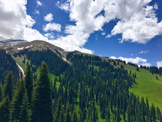 新疆旅游旺季是在六月,七月,八月,九月,这个时候的新疆是最美的,万物复苏,绿草如茵,牛马成群,冰川湖泊,繁星璀璨,闻名的独库公路也在每年六月份才开放,那是一条历经十年横穿天山的公路,从山脚绿树环绕到山顶的白雪茫茫,一条五百多公里的道路拥有四季分明,震撼人心。这次我们五月底去,没有赶上开放时间。