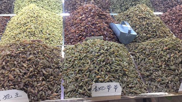 多到眼花撩乱的葡萄干,右上角是新疆的精河枸杞,我也买了一些。