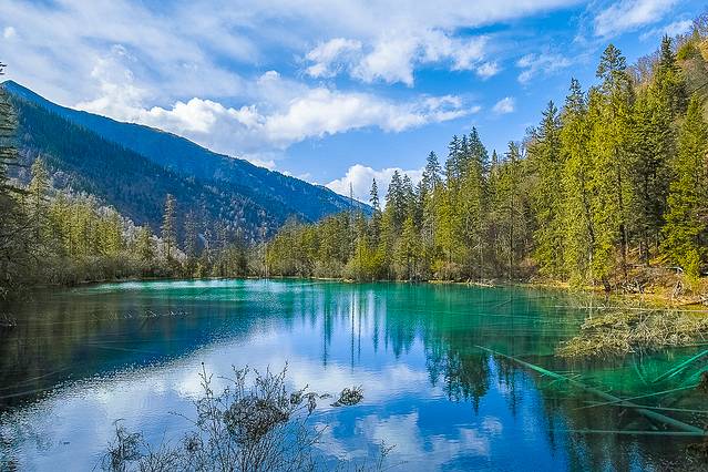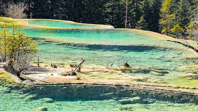青龙海:它是景区的第二大海子。我们可以看到,四周的植被郁郁葱葱 ,是相对比较独立的一个景点。沿着环行栈道走上一圈,且不说湖光山色之美,就林间错落有致的吊麦杉、云杉、雪松及高山冷箭竹、杜鹃树、地苔 、海风藤等等,就是一道道美不胜收的风景。这里树根、树干沉淀的钙化池,有的像玛瑙,有的像珊瑚,有的如珍珠,质地纯洁,造型精巧,俨然一尊尊天然的艺术品。