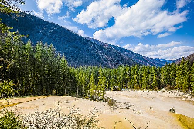 神泉:由于特殊的地形以及当地独特的地质结构,这里的水质偏硬、含钙量较高,且四周皆为钙化岩,神奇的是这泉眼里流出的潺潺清泉却含钙量不高,而且富含大量对人体有益的微量元素偏硅酸。由此缓缓涌流在金银滩上半部分,形成了一汪清亮的水源。由于用此泉水洗浴之后,能起到明目提神,饮用则清冽甘甜,生津止渴。可以说是不可多得的一处优质矿泉水。这里被当地藏区同胞视为圣洁之水。