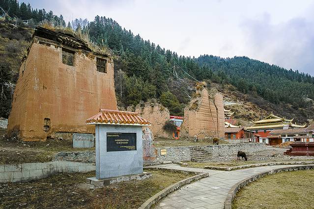 古藏寨里的大录寺,全名彭措罗尔伍林寺,意为大录圆满珍宝洲,也称顶果寺,由康巴地区高僧曲扎让波始建于藏历第八绕迥火鸡年是公元1477年,距今 543年,为藏传佛教吉祥萨迦派,若尔盖求吉寺子寺。